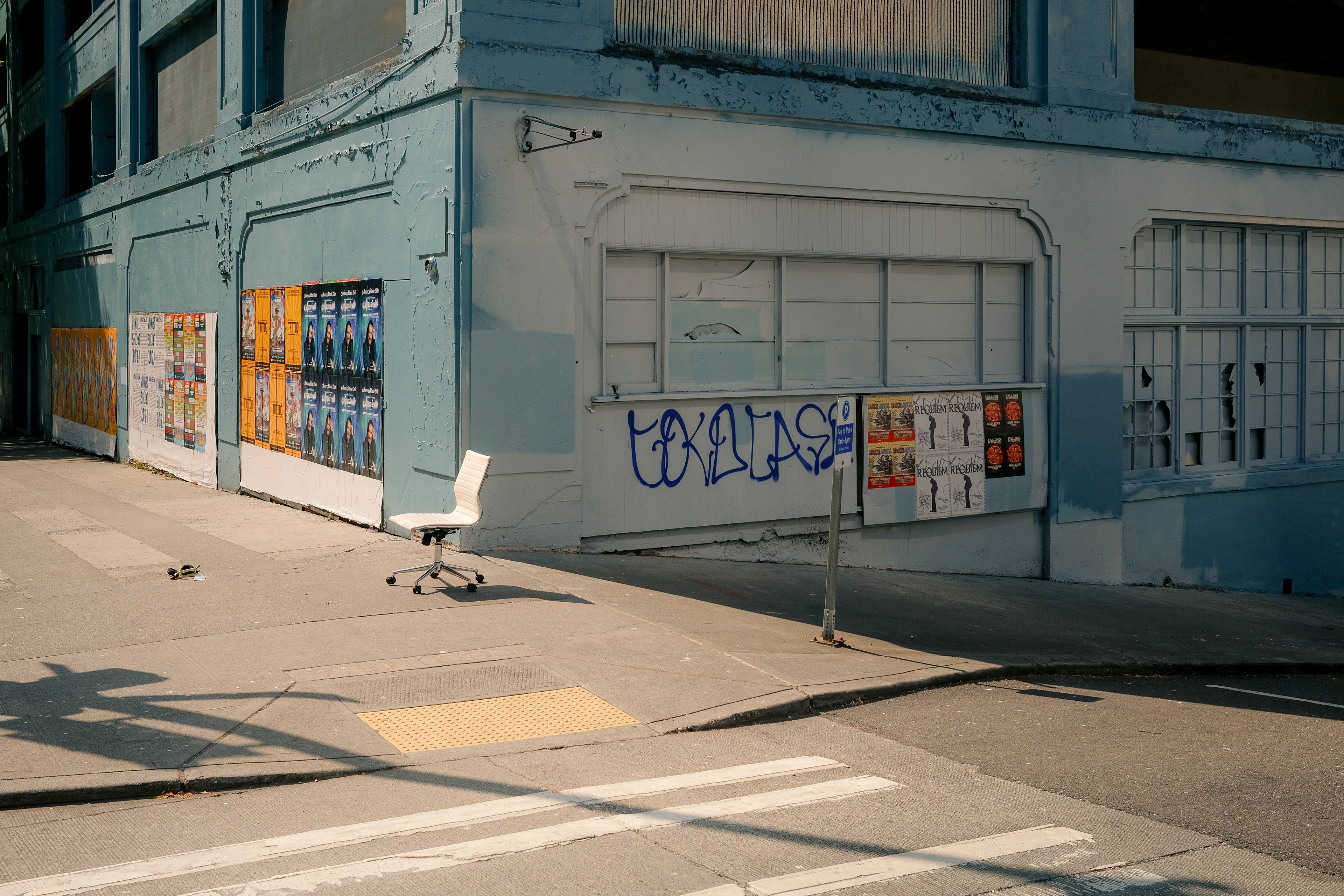 Street furniture in Seattle. I was at this spot three times over the space of an hour and this chair came and went in that time.